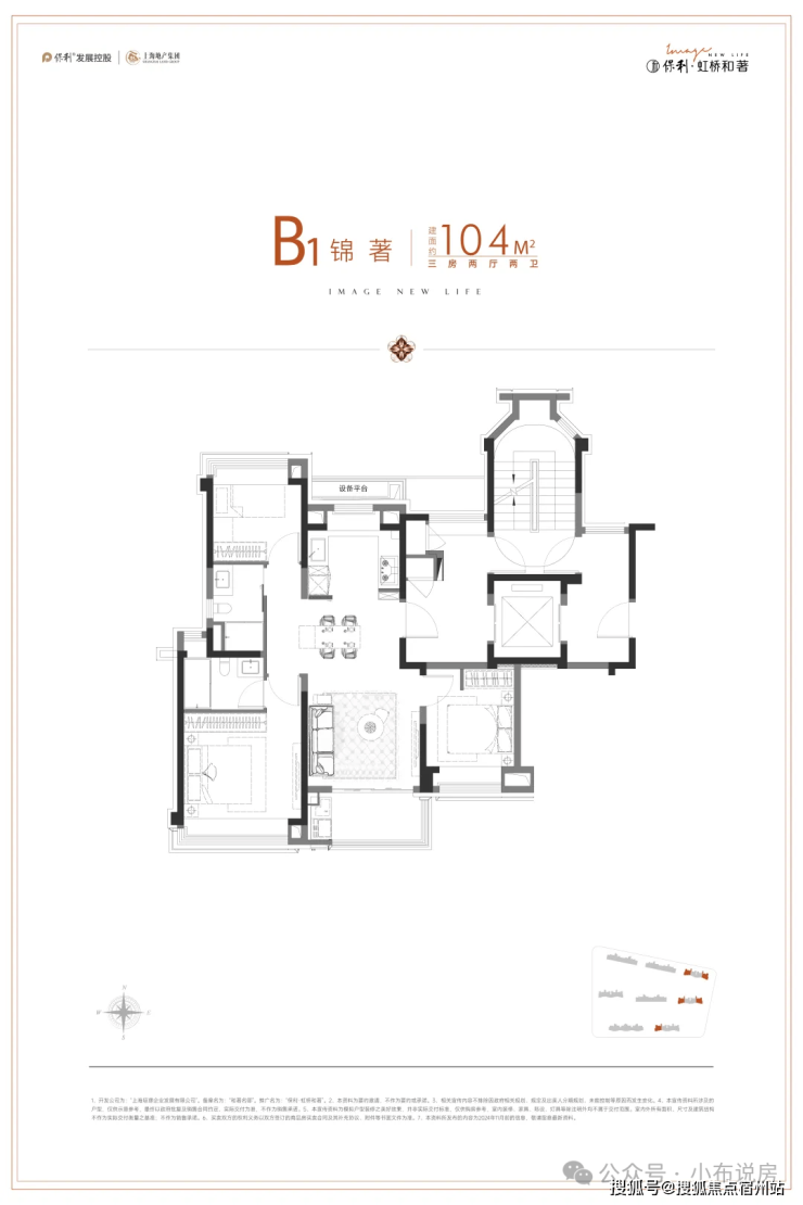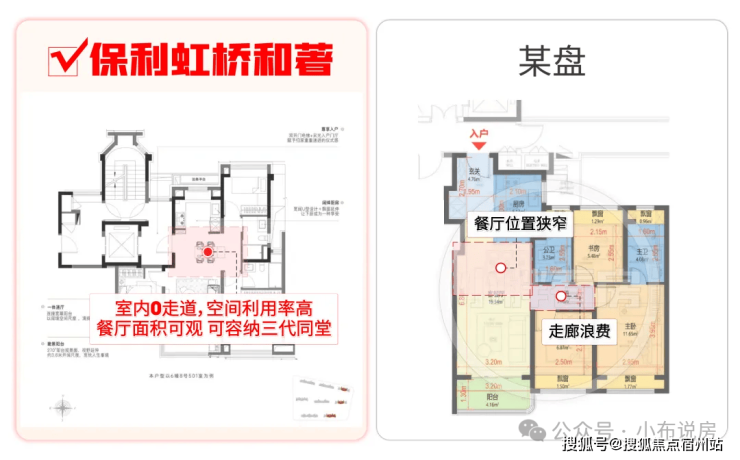 先说户型:如果你熟悉上海市场,你会发现目前市面上的户型普遍会面临:利用率低、收纳空间少、有连廊、卫生间少/功能性差、卧室太小不够等问题。但保利虹桥和著的建面约104㎡3房2卫,却很好的解决了以上所有问题: