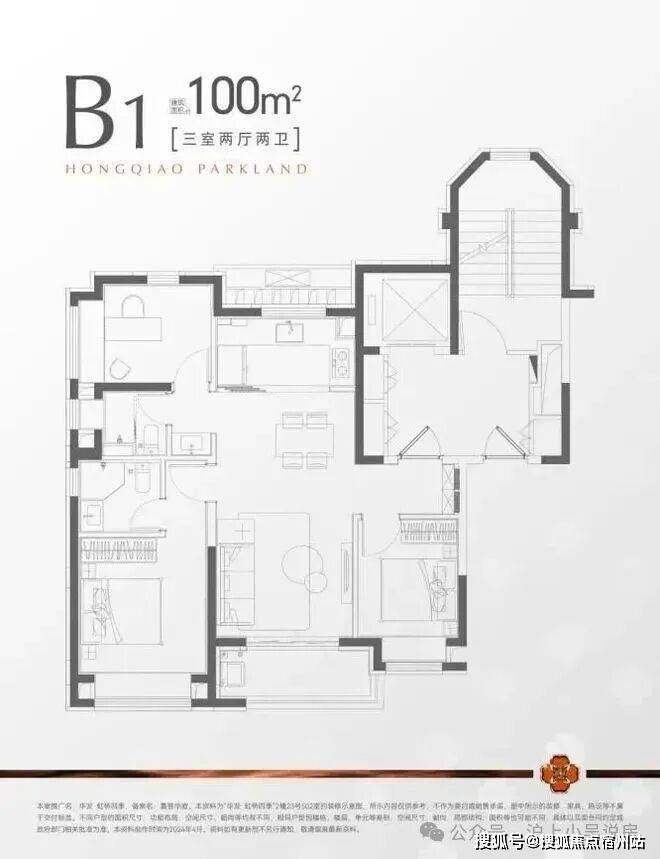 建面约100m²三房两厅两卫,空间利用率拉满!