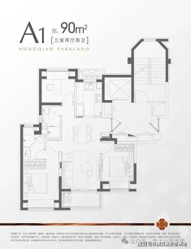 建面约90m²三房两厅两卫,刚需上车不二之选!