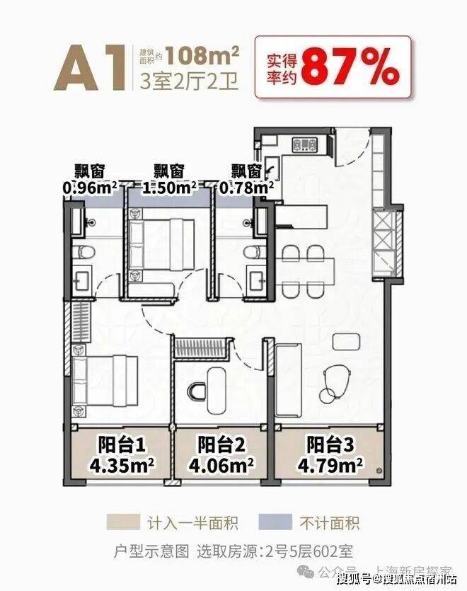 大华静安年华售楼处电话4008569058☑️☑️建面约108㎡3房,三阳台面积达约13㎡(赠送一半),飘窗赠送约3.3㎡,室内使用面积达约94.5㎡,实得率高达约87%,总赠送面积比常规次卧都大。大华静安年华售楼处电话4008569058☑️☑️