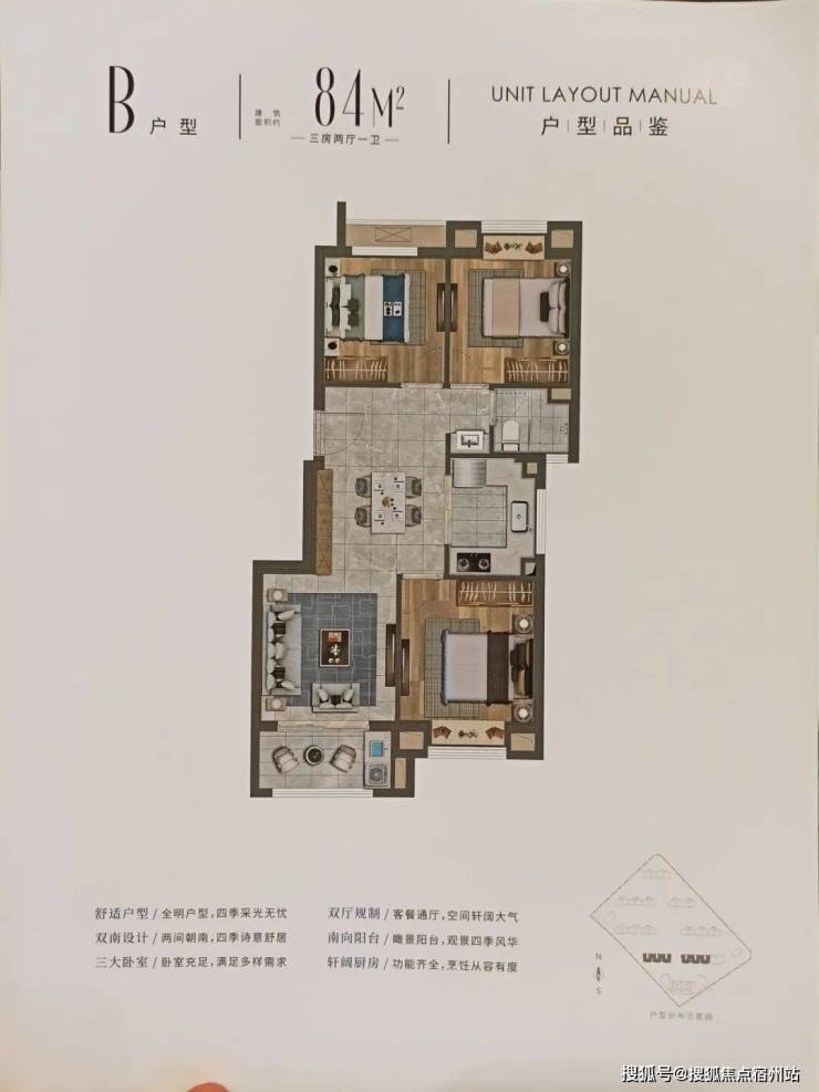 【建筑面积】:84~96㎡(3房,约3.1米层高)