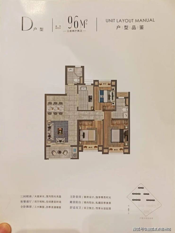 户型面积:D户型建面约96㎡ 三房两厅两卫