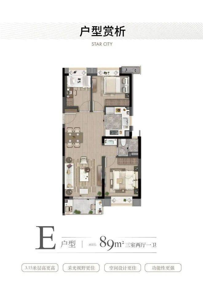 建面约89㎡三房「灿耀星城」售楼处电话:4001185086