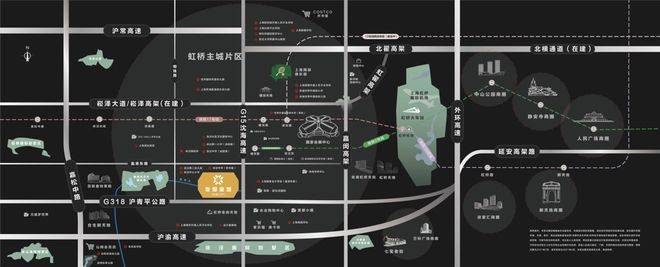 交通方面,项目毗邻沈海高速(直线距离徐泾道闸口仅约700米),三横(崧泽大道、沪青平公路、沪渝高速)三纵(沈海高速、嘉闵高架、外环高速)立体交通网络,自驾可快速直达中山公园、静安寺、人民广场、徐家汇。