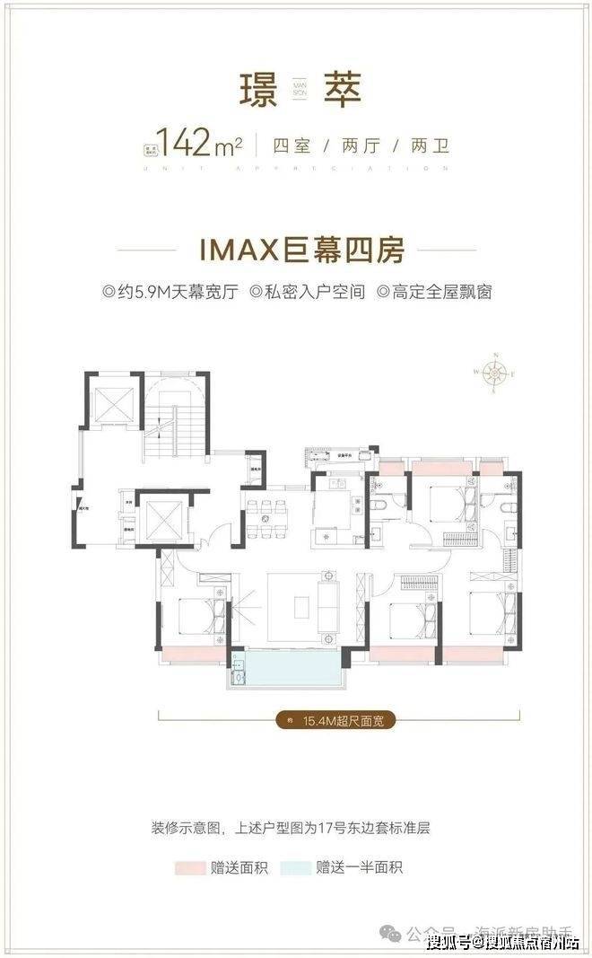 倘若拥有更高的预算,那么这套建面约142㎡4房2厅2卫非常适合改善家庭的需求。其南向面宽达到了15.4米,比肩豪宅平层产品的气场和尺度感。