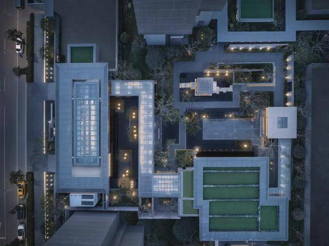 大面通透玻璃外衬定制龙鳞纹金属网的双层结构,将国画中框景的手法运用独到,在达到朦胧美的同时,为归家创造一定的私密性和独特的东方礼序感。