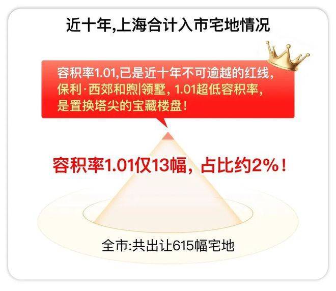 据上海土地市场统计,近十年共出让615副地块,容积率1.01的共13副地块,占比仅约2%;容积率低于1.01的,供应量为0!
