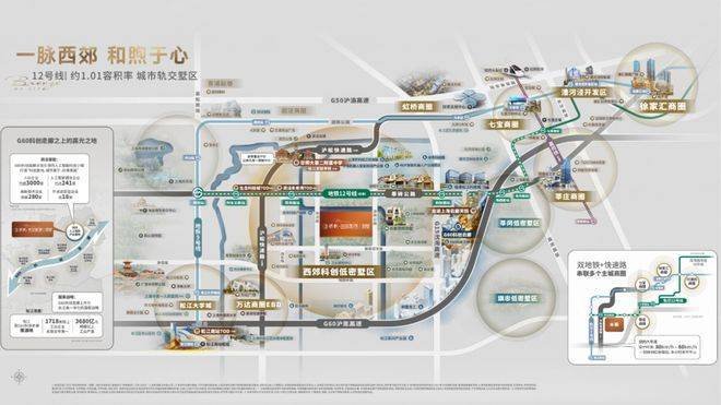 12号线西延长线建成后,从保利西郊和煦出发,1站G60云廊,一脉徐汇滨江,享受四大超级商业巨舰,并能与10条线路无缝换乘,快速接入城市中心!价值逻辑实现颠覆性跃升!