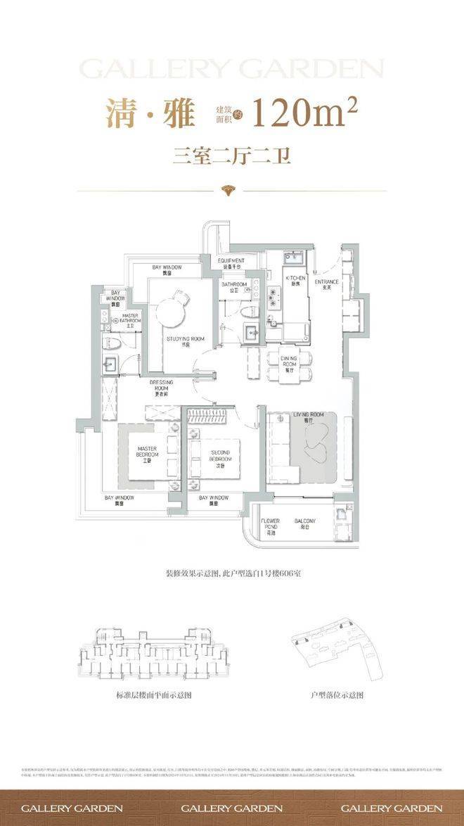 建面约120㎡的户型,定制LDKB一体化宽厅,更舒适的功能定制, 270°转角窗观景套房设计,实现了居住品质与观景的完美结合。