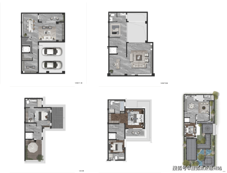 约125㎡的明星户型做到了 5套房设计,地下一层、地上三层的空间形态,将空间尺度无限放大。