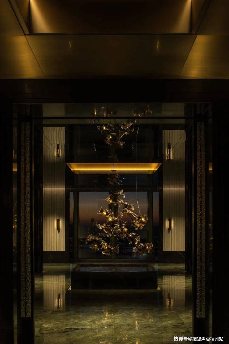 进入大堂,抬眼可见的是由一块完整的 巨型玻璃 组成的天窗,约7.9米高的钻石切面整玻吊顶+约500余块大花白奢石铺就的地面,让人每一次走进来都能感受到自然光线的包围,仪式感十足!