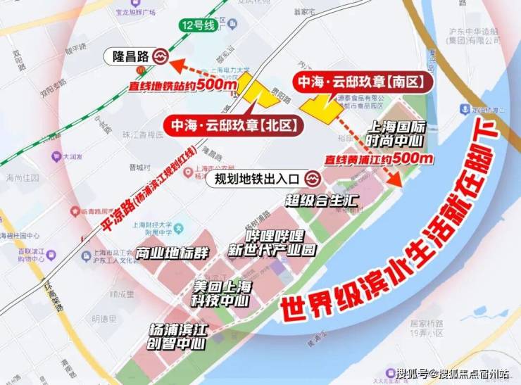 中海·云邸玖章距离江岸直线距离仅约500m ,作为当下片区内离江最近的项目,享美团、B站、超级合生汇等地标综合体配套,杨浦滨江生活中心。