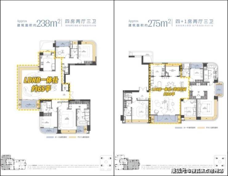 238㎡的LDKB一体化社交厅 约65㎡, 承载的不仅是家族聚会,更是塔尖圈层的社交主场。而278㎡LDKB一体化厅 约80㎡, 单客厅开间约7.2米,尺度感直接提升了一个维度。