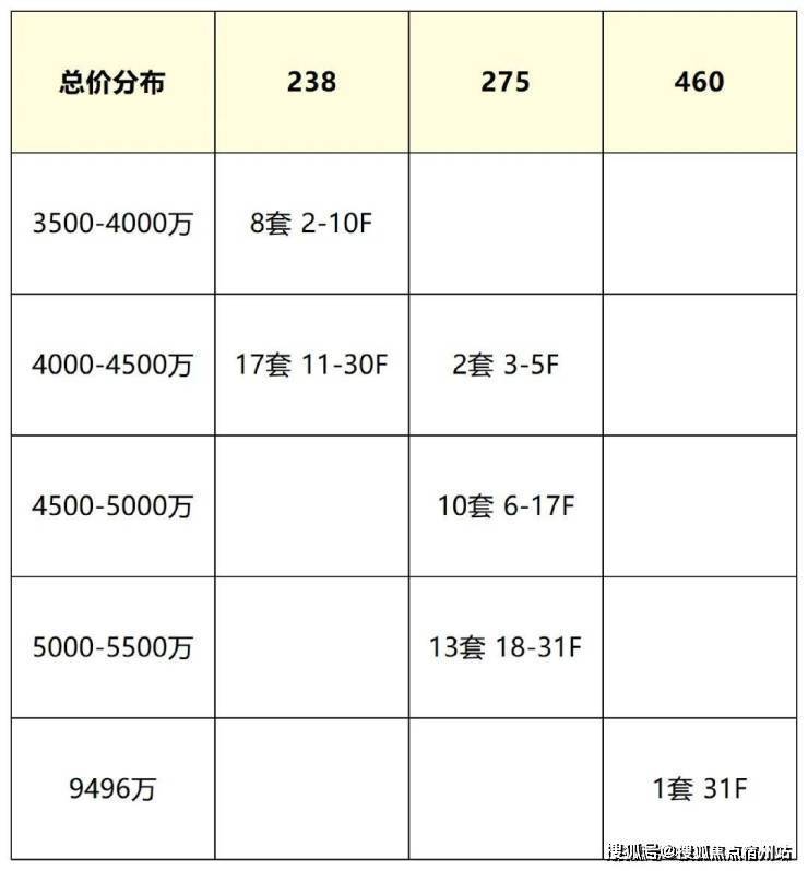 总价方面,3500-4000万的房源有8套,4000-5000万的房源足足有29套,4000万级预算买家上车的概率非常高!
