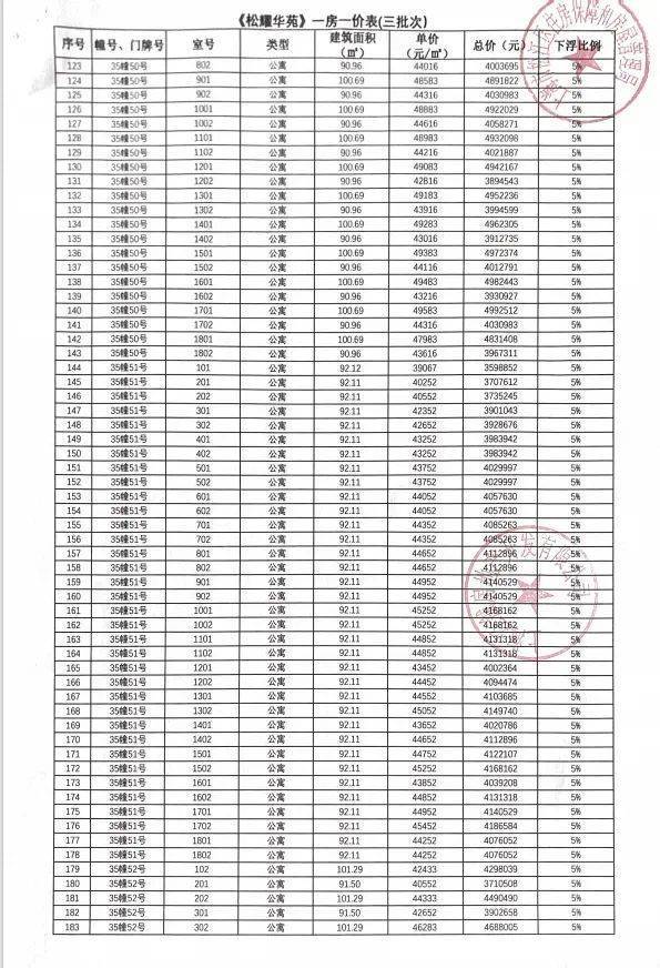 一房一价表如下: