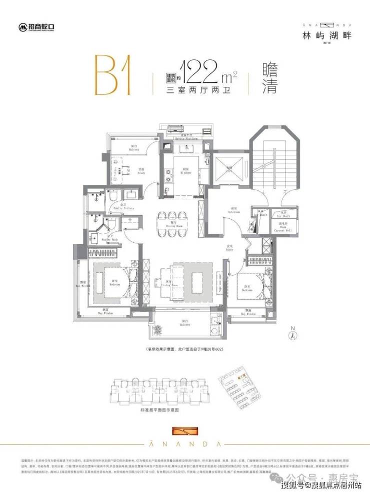 社区内5/8高层楼栋均有架空空间覆盖,共计约1700㎡,最高建筑层高约7.2米的架空空间以休闲下沉卡座、水吧台、休闲会客区打造,联动室外水池营造出酒店式度假空间,实现建筑与自然的无界融合。项目将推出建面约112㎡、122㎡、145㎡高层3-4房以及建面约160-165㎡叠墅,共计624套,其中112户型为一梯两户,122户型两梯两户。建面约112㎡3房2厅2卫,约166套,