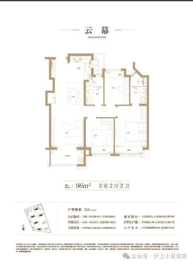 建面约96㎡,充分从居住者的角度考量生活动线、舒适度与生活感。 S型的分户墙,褪去呆板,为家具预留更多的空间; LDK一体化的设计打破空间局限,解锁更多的生活场景,也拉近家人间的距离;主卧套间自在独处,生活的优雅时刻尽显……