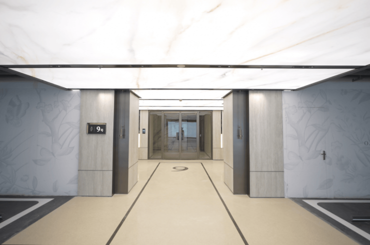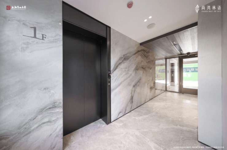此外,项目还设有 地上地下双精装大堂,明亮的灯光下,墙面地面的质感展露无遗。