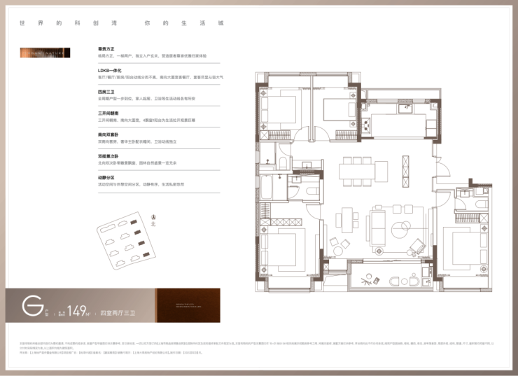 该户型最大亮点在于 “3 卫” 配置,区别于市面上超98% 的150㎡四房两卫户型,可打造双南套房,充分保障家人的尊贵感与私密性。