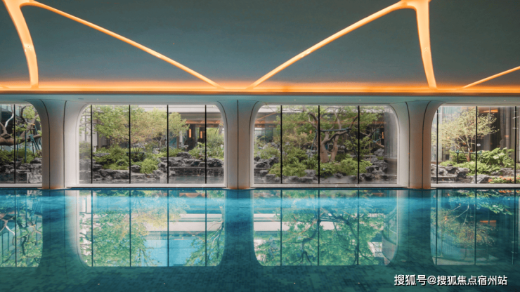 虽然当下来看,它的公区打造是符合市场主流水平的,但在项目23年9月首开入市的时候,它的高品质公区绝对是当时新房项目中的翘楚。项目的主要会所功能集中在一期,打造了 约1500㎡的下沉式会所,功能涵盖恒温泳池、健身房等。