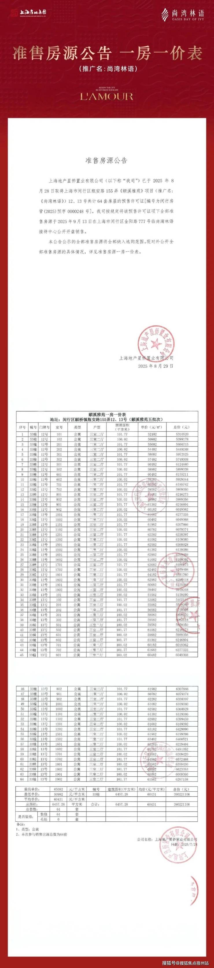 过会均价60431元/m²,510万起