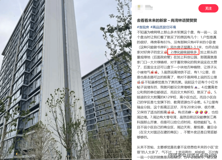 另外在社交媒体上,众多业主纷纷为项目低容积率、户型得房率、景观河道等点赞。☑️☑️尚湾林语售楼处电话:400-1183-605☑️☑️