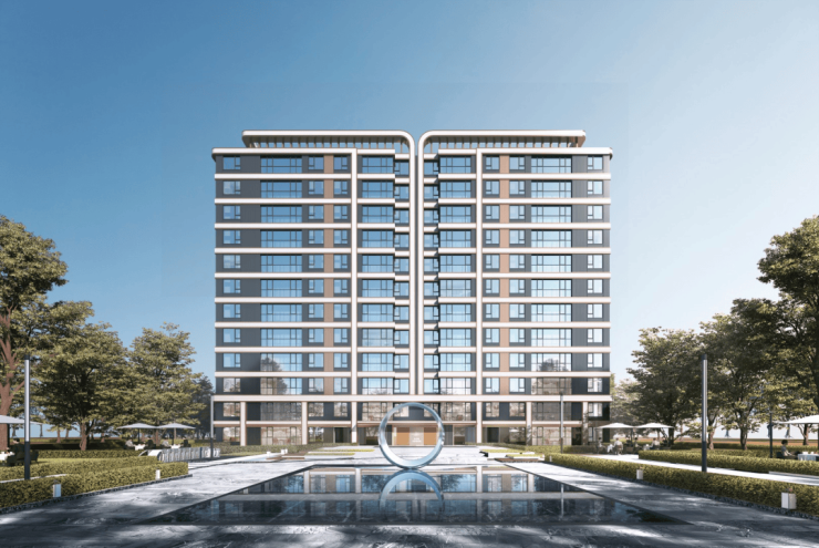 立面色调运用高级香槟金+淡雅白,中空玻璃,映射时代的建筑美学。