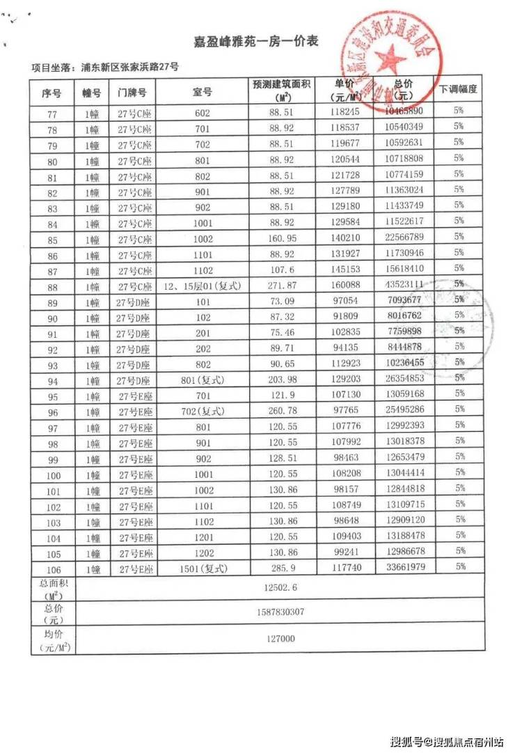 小区仅1栋楼,5单元16层,容积率2.5,绿化率25%,面积段73-314㎡,114套房源(包含8套公租房),建筑高度52米,开盘均价12.7万元/㎡,距离黄浦江350米,物业费21.5元/㎡/月。