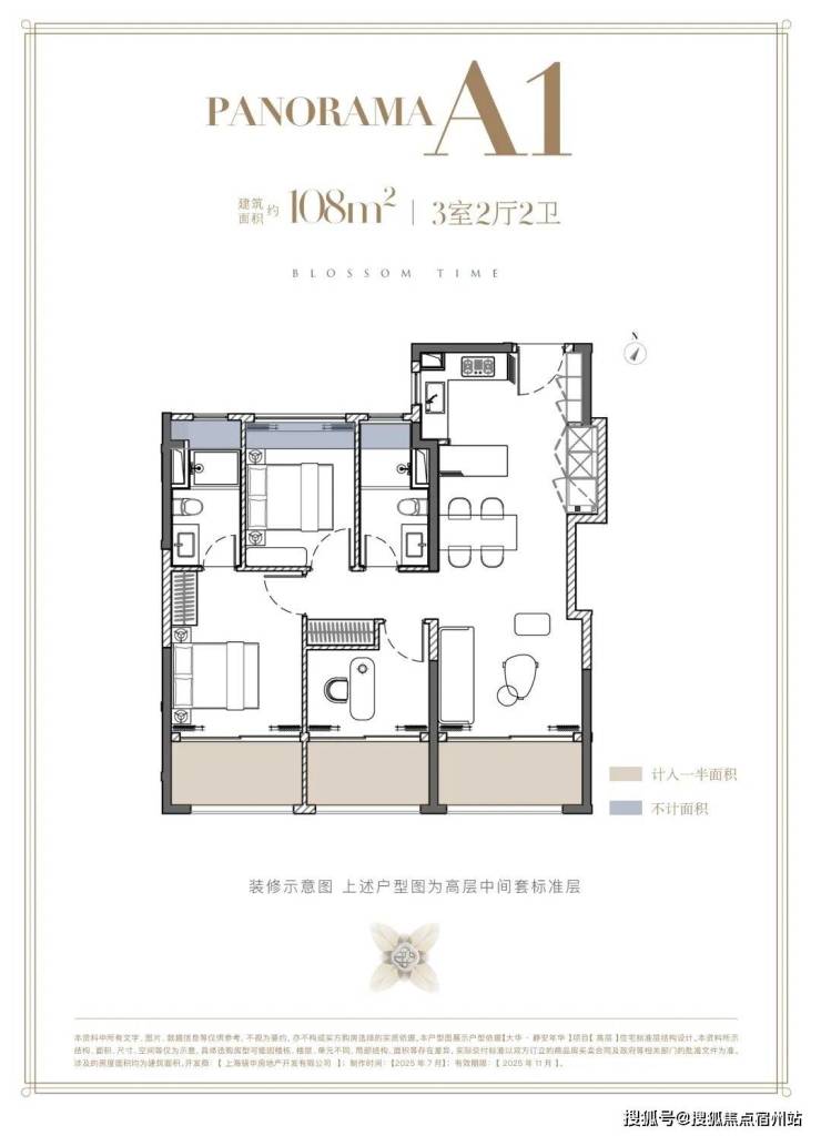 建面约108㎡3房2厅2卫