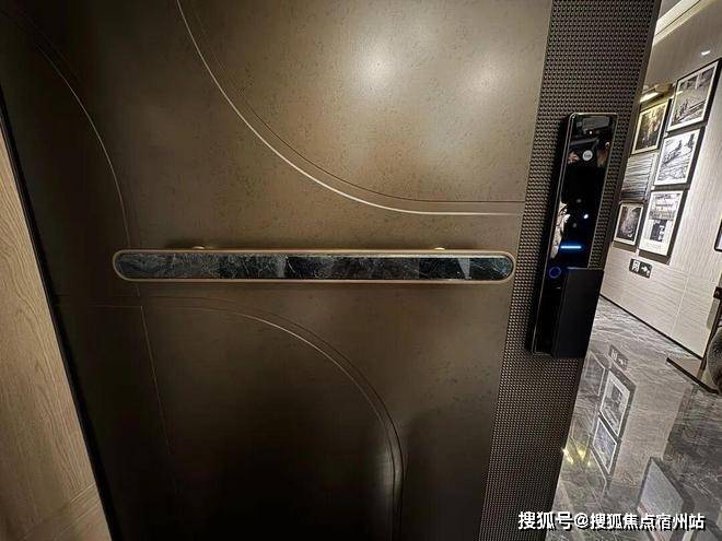 这个入户门,用了和徐汇滨江新盘14万+新盘同款的 翡翠绿玉石门把手 ,上手推拉的手感很不错,配上了耶鲁的智能门锁(没记错的话应该是七合一...)。