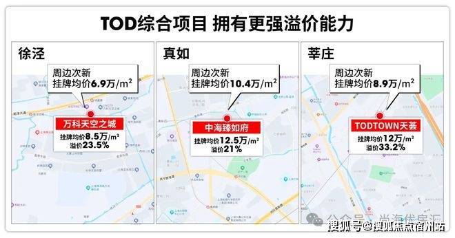溢价能力:相比普通楼盘,TOD综合项目本身更有溢价,也更保值,像莘庄天荟、万科天空之城等都已给出了更有说服力的结论。