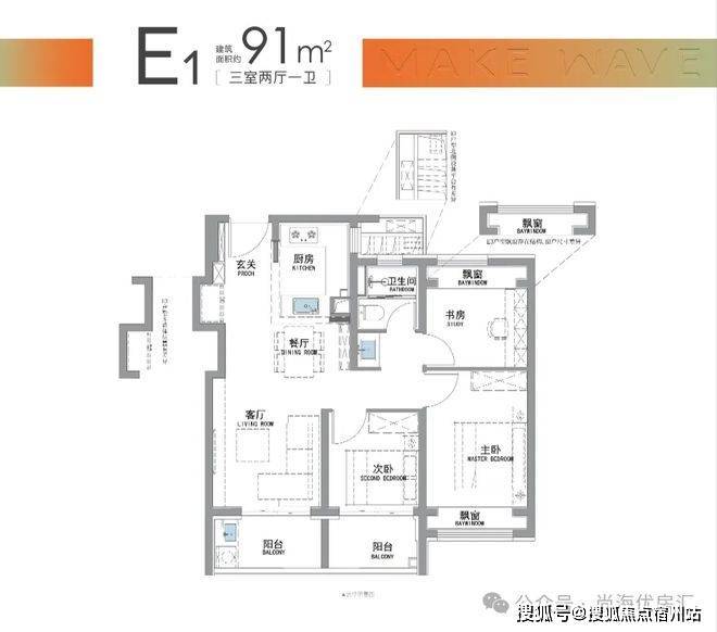 “南向双阳台+南北双飘窗”,构筑真3房户型!