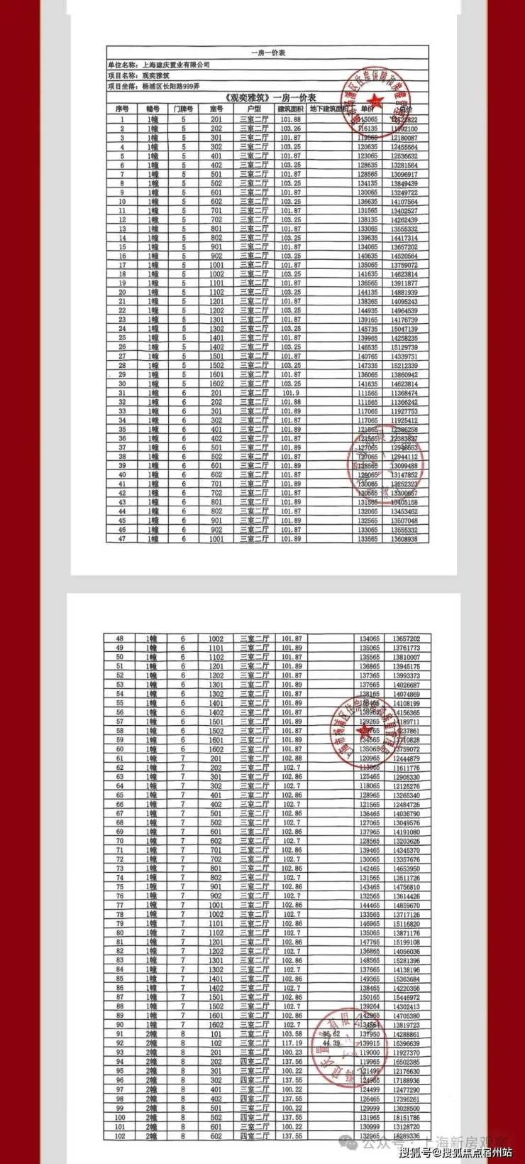 一房一价表如下:
