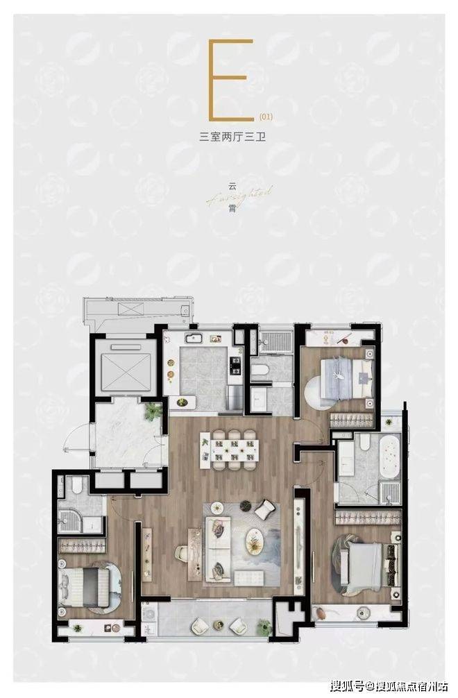 E户型:建面约140㎡3房2厅3卫