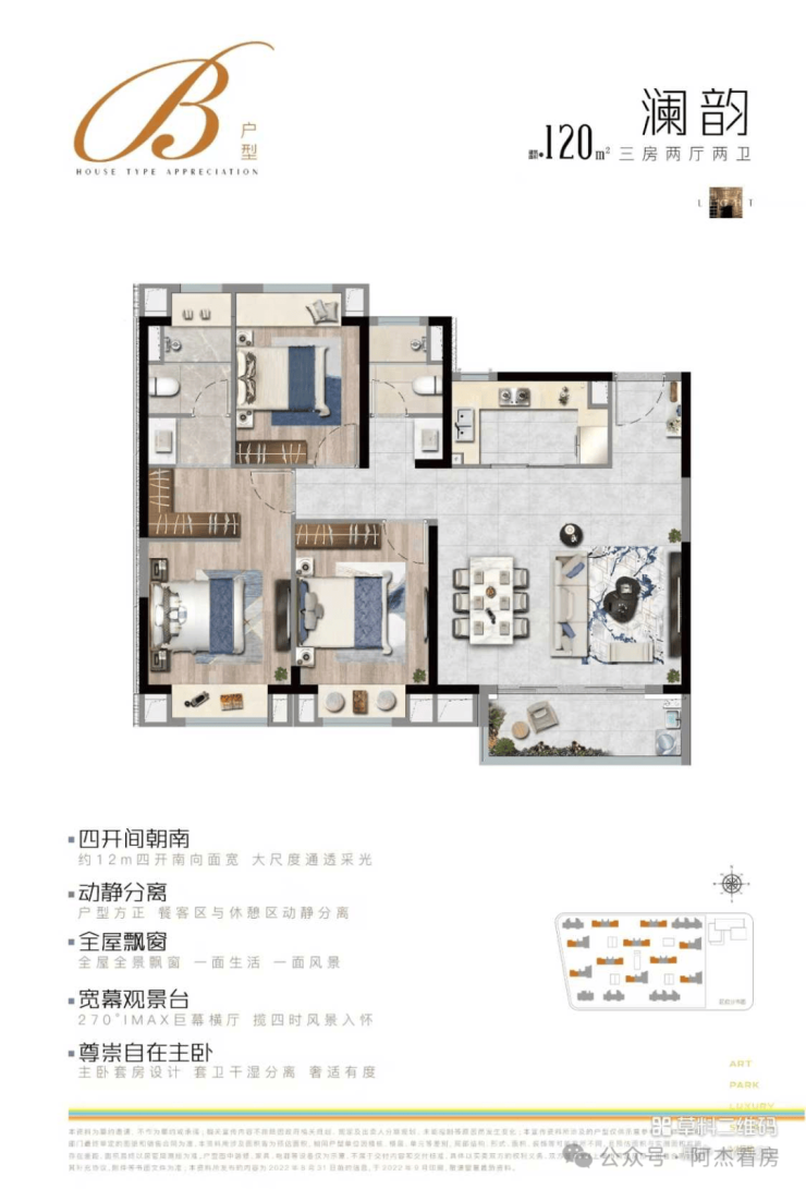 B三房两厅两卫(120平):352-464万