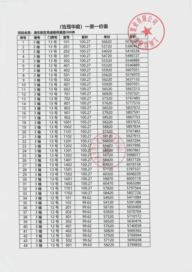 华发观澜半岛一房一价表▼
