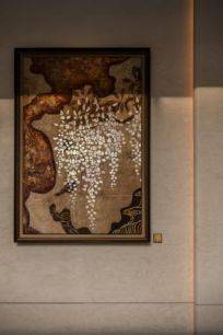 此外招商序更堪称一座手作慢艺的殿堂,许多珍贵的非遗绝技于此重获新生。从入户大堂巨幅火烧金箔艺术画作、秸秆镶嵌精妙入微的艺术装置、到源于西周的螺钿工艺的流光溢彩,每一个艺术品与画作都有着在地文化的故事,通常只能在内环豪宅中方可见到如此之多的手工艺术品。