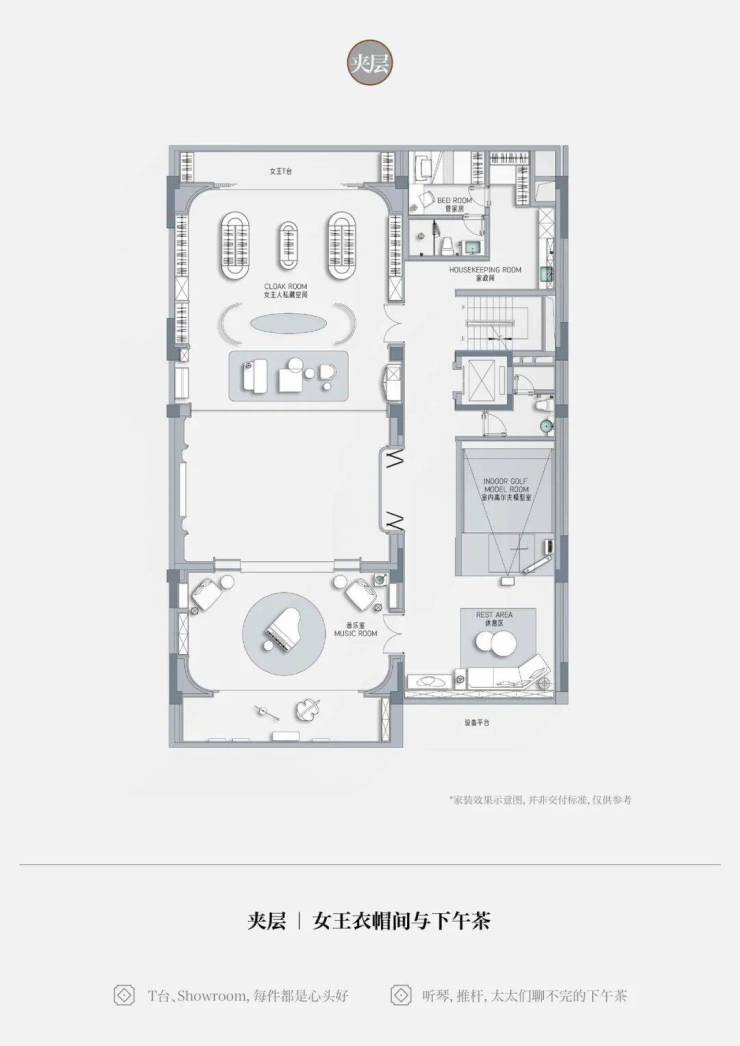 • 高定包包服饰、高跟鞋橱窗、室内Mini高尔夫,每一样都是太太的心头好