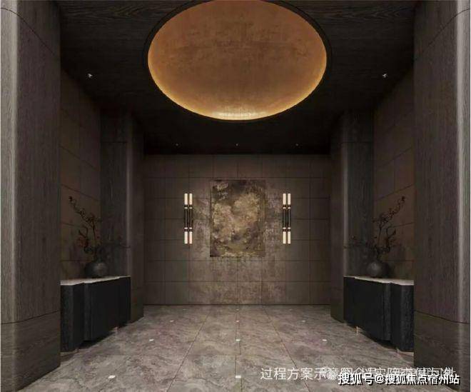 约50m面宽的气派门头+酒店式入户大堂,打造艺术格调归家。入户大堂由吴滨设计,呈现“天圆地方”的效果,方正的线条勾勒出空间的规整与大气,与顶部的圆形形成刚柔并济的视觉平衡,让每一次归家都成为一场尊贵的礼遇。