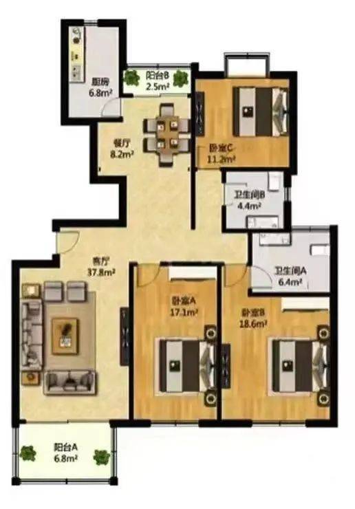 建面:149.11㎡:三房两厅二卫☑️☑️金色贝拉维售楼处电话:400-1183-605☑️☑️