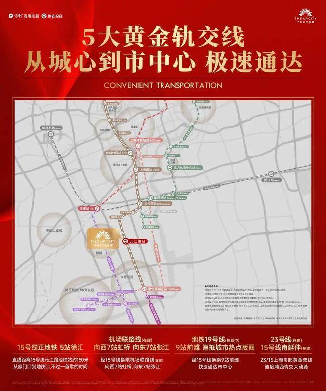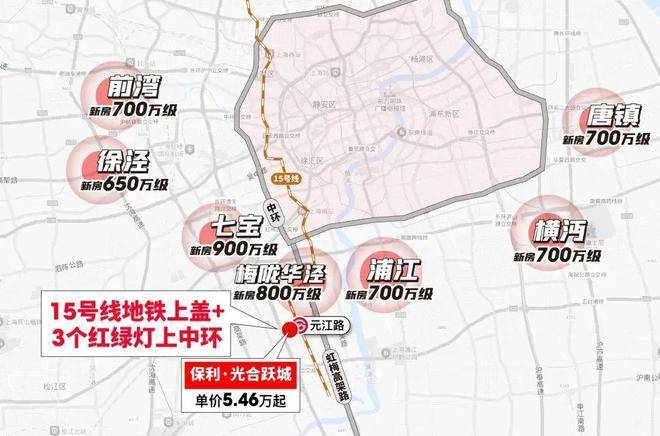 首先是远超同价位同环线的通勤效率:公共出行方面,项目15号线元江路站TOD住宅,完全可以实现步行进站,进站后5站直达徐汇!