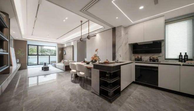 比如,该样板间的吊顶采用了工艺水准更高的圆弧形吊顶,空间过渡圆润自然,营造了丰富的层次感,使得整个户内空间更加舒适阔绰。
