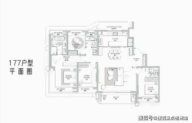 177m2艺术贵雅奢邸是海上·清和玺压轴力作,延续玺系经典的设计理念和思路,阔朗的四面大开间设计,客厅做到了大横厅设计,延续了曲面流体的阳台,并赠送了独具特色的阳台迷你花园。