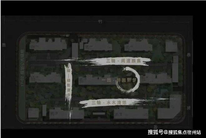 首推地块以南北一轴+东西两轴及核心景观区,构成 “一园三轴”的景观结构,移步异景,如诗如画。