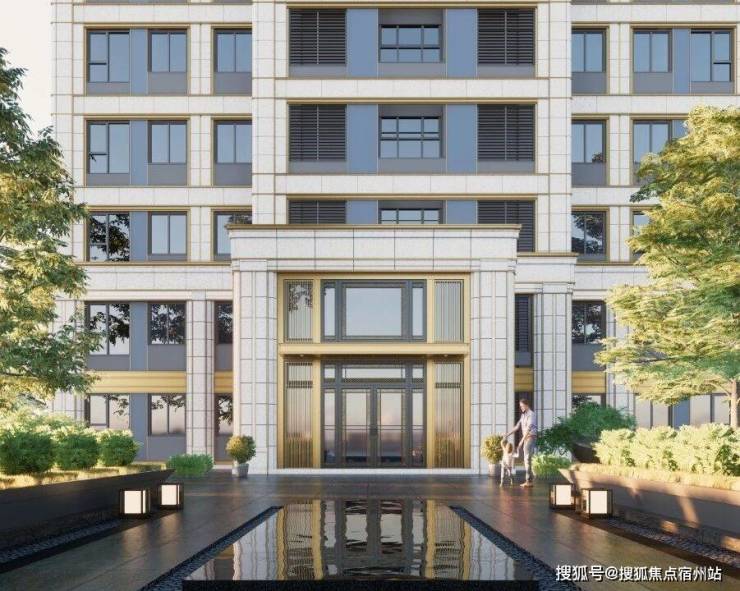 入口中轴对称式的前厅水景,两侧阵列由榉树围合组成,不仅拥有“门前中举”的美好寓意,也让入口的仪式感拉满,与灵动的喷泉水景交相辉映,形成具有东方礼序的归家体验。