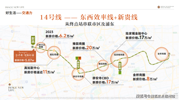 3)聚焦14号线沿线的新房价格 ,新天地约21万/㎡,静安寺约13.6万/㎡,南京西路约14.2万/㎡,陆家嘴约17万+/㎡,真如约10.9万+/㎡,而 保利虹桥和著 售价预计 仅约5字头,妥妥的地铁14号线沿线的价格洼地!