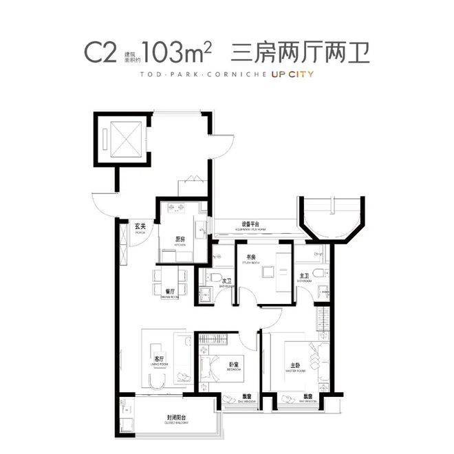 阳台收纳系统:预留阳台家政收纳空间和阳台家电摆放空间;