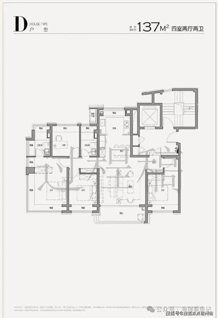 建面约137㎡的4房户型,在同等面积下实现了更精巧的功能布局,标配入户玄关,客餐厅、厨房、阳台一线贯通,家政间,通透感十足270°全景舱设计是项目一大亮点,部分户型通过北/南/西三向展开近36米连续玻璃幕墙,西南向无遮挡,城市与公园景一览无余