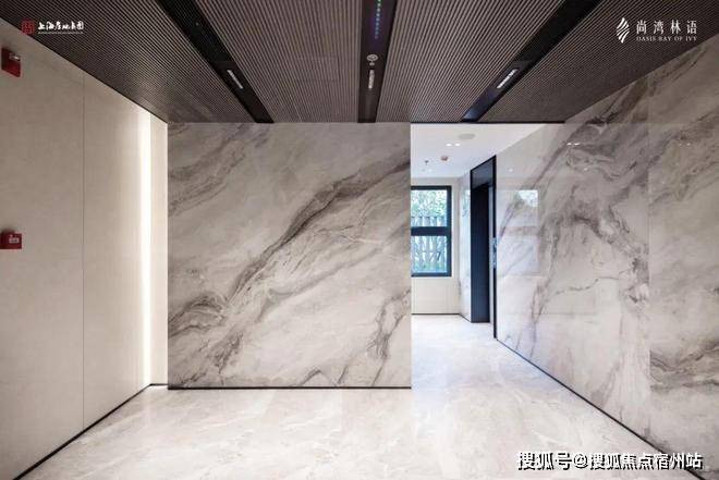 进入南入户大堂,能感受到具有仪式感的现代轻奢设计,灰色大面铝板搭配金色格栅,每一次入户都能体验到无比尊崇的感觉。✅尚湾林语售楼处电话:400-882-4258(预约)✅ ✅内部墙面做了大面积岩板,以及具有设计感的吊顶,更贴心地配备了空调,营造舒适的环境。