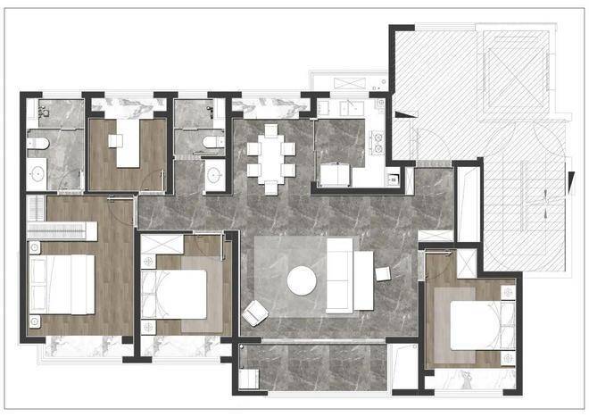 291、家配图:在墨线图的基础上配置上家具的平面效果表现图。